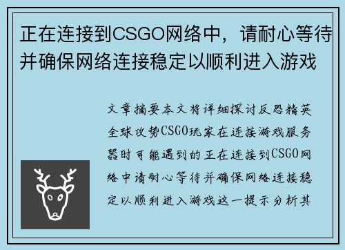 正在连接到CSGO网络中,请耐心等待并确保网络连接稳定以顺利进入游戏